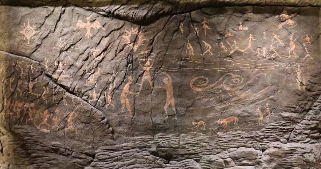 ▲图为欧诗漫珍珠博物院历史馆中先民发现珍珠的壁画
